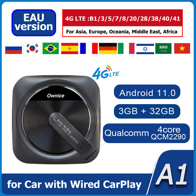 Ownice A1 Android 11 CarPlay Mini Ai TV Box Wireless Car Play Android Auto adapter for Youtube Netflix Spotify iPTV 4G LTE GPS