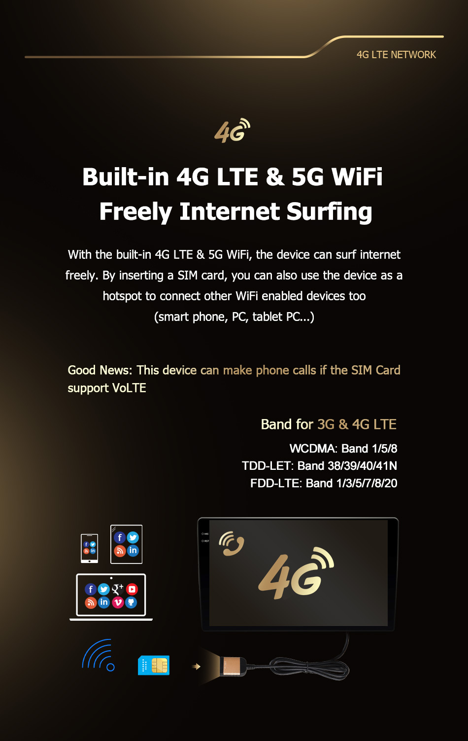 - Built-In Speaker/Microphone, Wifi Function, Support Steering Wheel Control, Support 3G Network, Support 4G Network