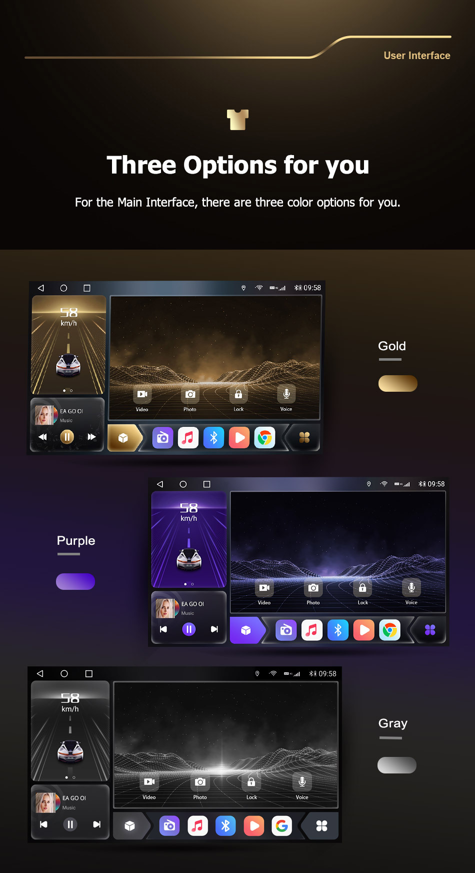 - Built-in GPS, Mobile Phone, MP3 Players, Voice Control, DSP, Carplay, Android Auto, Reversing Input, Split Screen