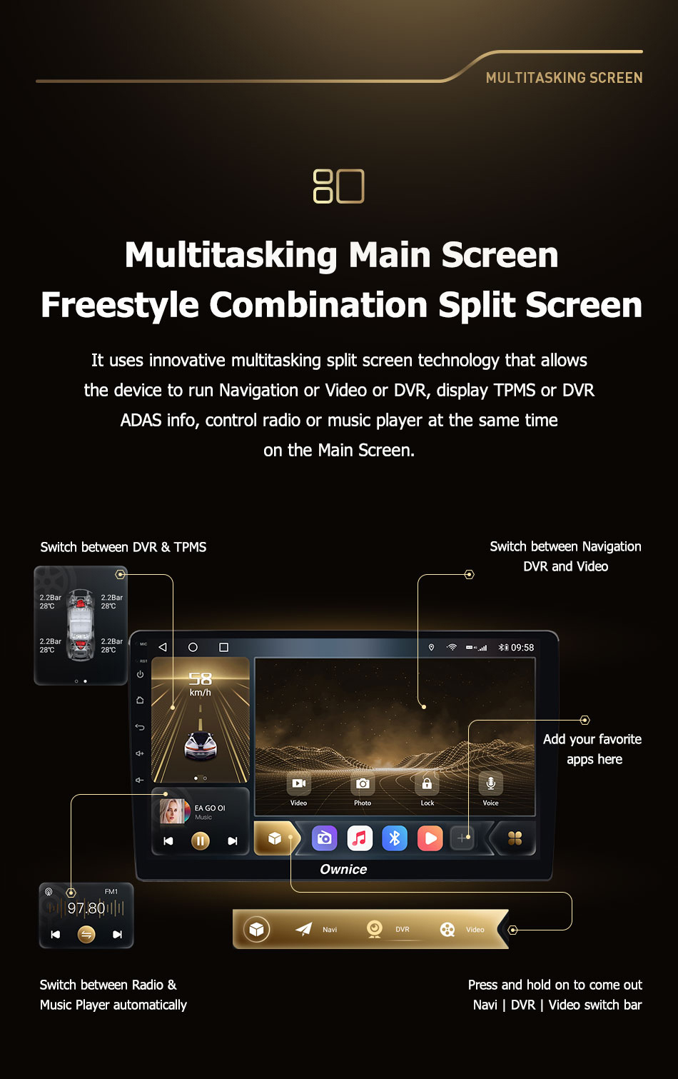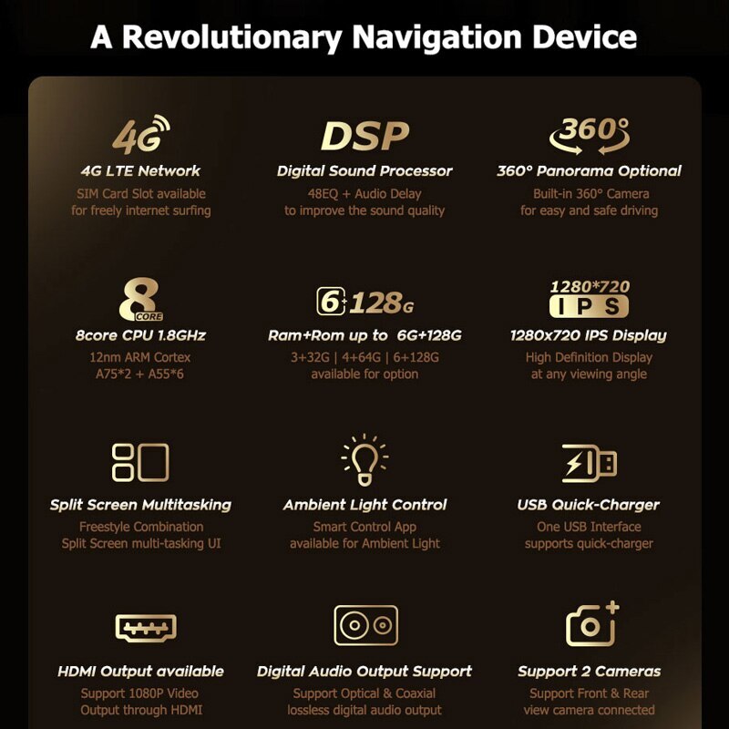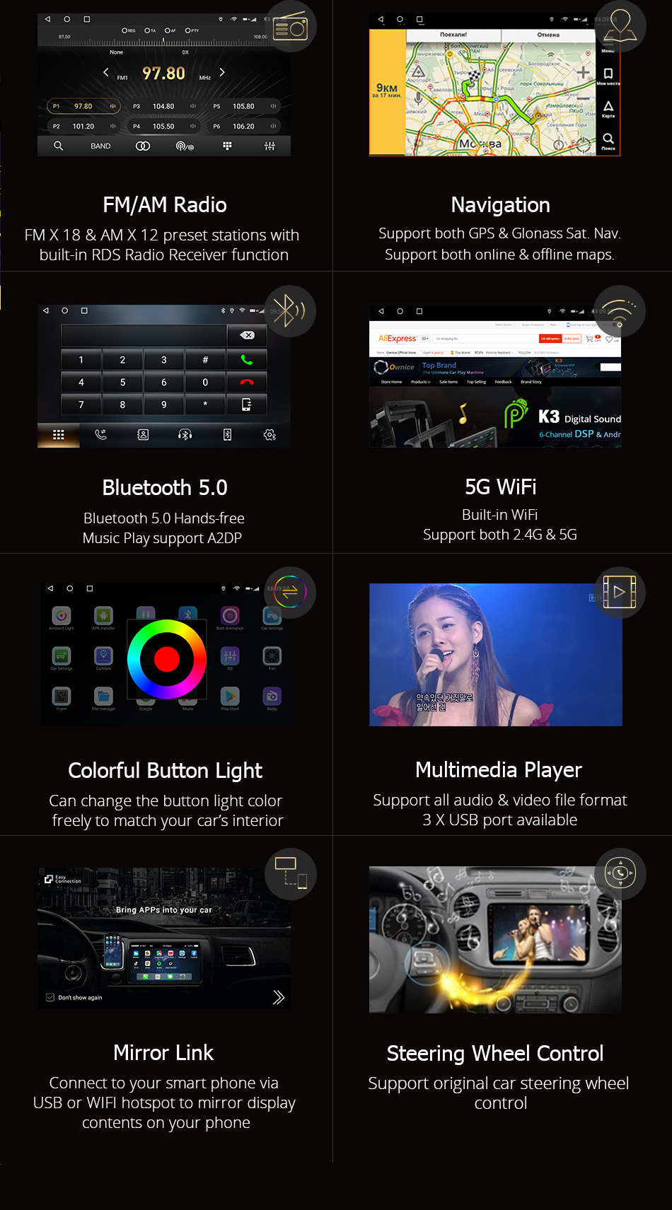 - Radio tuner/Capacitive screen/Bluetooth/TV/Built-in GPS