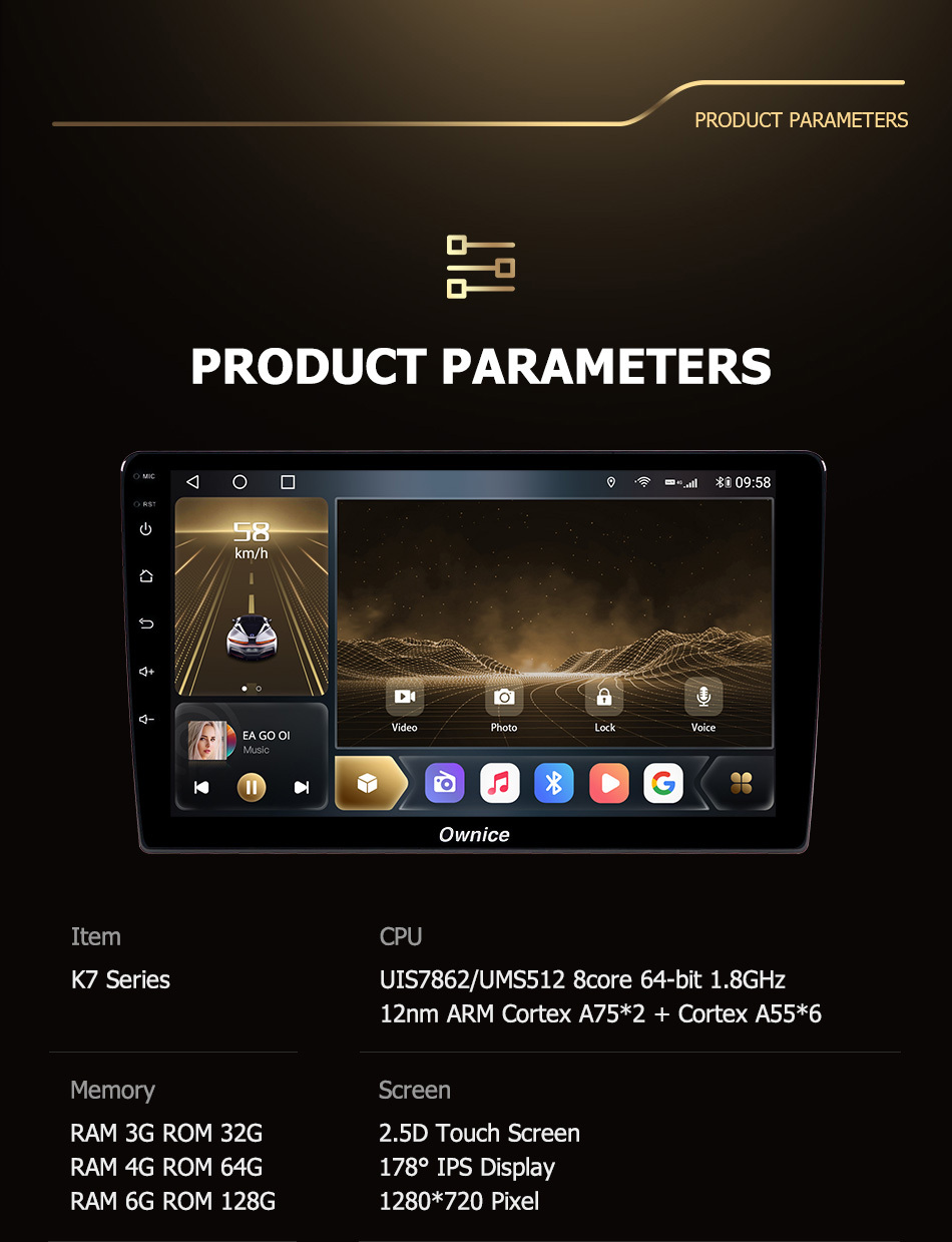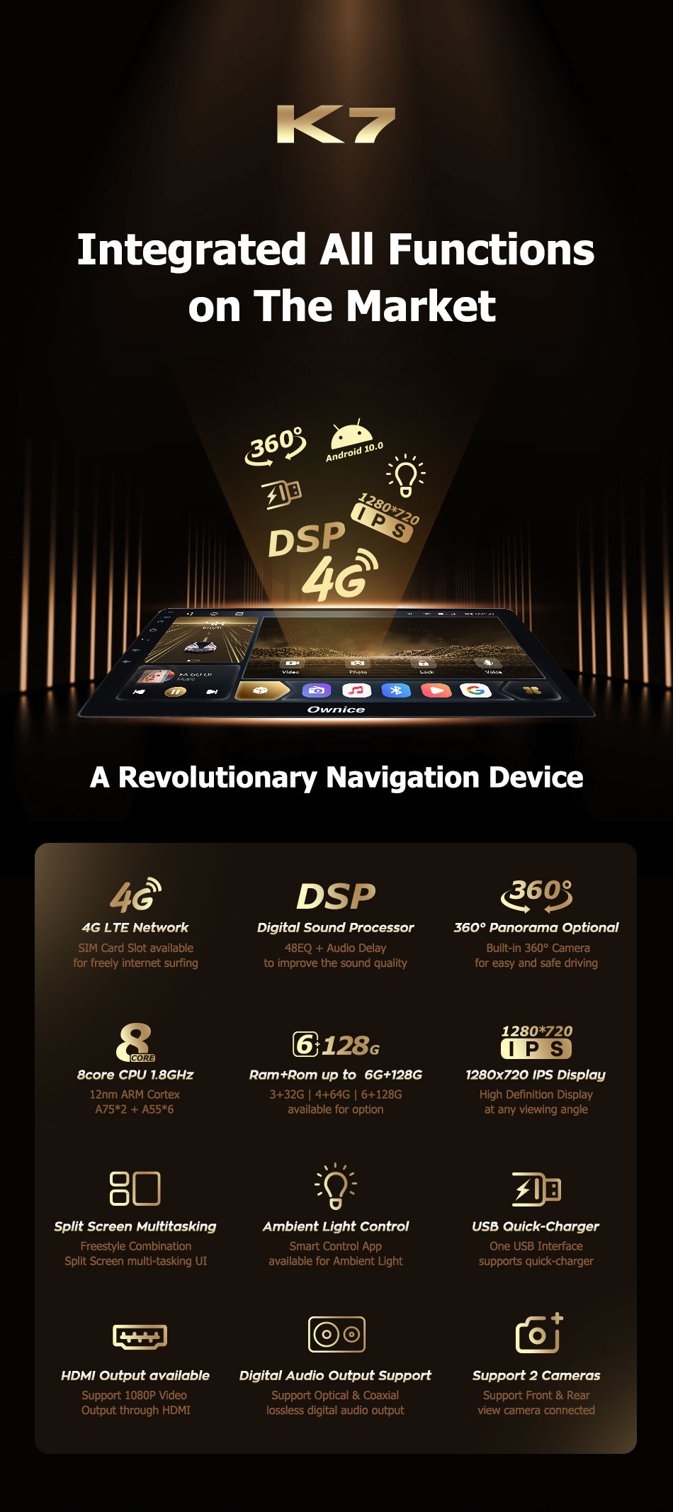 Ownice K7 Android 10.0 Car radio 2 Din Universal with 6G RAM 128G ROM 1280*720 Support 360 4G LTE DSP Car multimedia